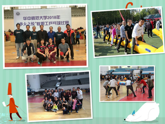 2018年11月1日至3日,华中师范大学2018年运动会顺利举行,外国语学院教工组队在学院党委和工会的组织下参加了开幕式瑜伽表演和教工组4项目的比赛,取得了骄人的战绩。 在首日(1日)陆地龙舟和跳绳两项比赛中,我院教工队取得了不俗的成绩。但在门球比赛中,所有的队员虽然拼尽了全力,很遗憾,没有进入全校前八名。 在第二天和第三天(2日和3日)的比赛中,我院教工再接再厉,两战两捷,在雷霆战鼓和谱写华章的比赛中,取得了优异的成绩。 另外在此前一周的兵乓球比赛中,我院教工夺得了乙组团体亚军。 最终我院教工代表队获得了23.5分的团体总分,全校排名第七。