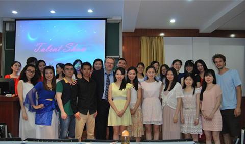 2014年5月29日晚7:00在三号楼3408大型会议室举办了主题为“Talent show”的联谊晚会,本次活动由华中师范大学外国语学院研究生会和华中科技大学电信系研究生会共同举办。活动吸引了外院及其他学院的 同学前来参与,活动现场座无虚席氛围轻松愉快。