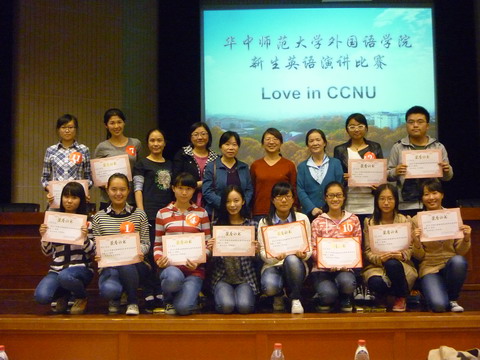 主题演讲各抒己见,爱在华师情深意切 选手吕玥在演讲中提到:“在华师我们享受着自由的氛围,在课堂上,随处可见老师与同学一起自由沟通。这里同样有多姿多彩的课外活动和社会体验,我们可以尽情选择兴趣所在,我们可以发现新的领域。而且到处可见的外国留学生给我们提供了丰富的学习外国文化的机会,也有很多兼职供我们选择。尽管我们会忙于学习以及其他许多事,但是这也激励着我们去坚持自己的梦想。我相信每个学生都可以通过自己的努力去赢得未来,这就是爱在华师的真正内涵。”选手樊晓艺认为 love in ccnu 应该是:互爱 爱己 爱“爱”本身。在爱己方面她特别提到了“encourage yourself”。她说鼓励自己也是对自己的一种爱。选手吴怡则围绕同学之间的爱,老师的爱等进行了阐述。当被问道老师和同学的爱具体体现在那一点的时候,她举了自己参加演讲比赛老师给与悉心指导和鼓励的例子。选手汪汇洋是一位唯一一位男选手,他的演讲从容而不拘小节,最终取得了85.57的成绩。 选手陈洁在谈到“爱”是一种能力,同时还举了袁隆平的例子来佐证其观点。 选手陈寒露在演讲里讲诉了自己和新生志愿者之间的一个故事。 即席演讲凸显新意,反映敏捷扣人心弦
