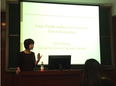 黄心雅教授的报告题为《跨太平洋原住民文学:有待记住的过去》(Trans-Pacific Indigenous Literature: Past to Remember)。讲座伊始,黄教授为在座师生播放了一段纪录片,名为《彩虹的故事》。故事记载了台湾原住民泰雅族通过用嘴巴来讲故事和吹奏传统乐器口簧琴的方式将部落的故事、记忆和文化代代传承下去,并烙印在血脉当中。由此,她强调了口头表述(Orality)的重要性。她认为,人类的嘴巴不仅可以汲取营养,还可以表达感受,从而建构身体和灵魂的双重自我,进而传承一个部落的文明,形成世界文化的杂糅特性。因此,她认为,在文学和文化中,DNA这三个字母代表的应该是后裔(Descendent)、现今(Now)和祖先(Ancestry),不仅仅意味着基因的遗传,还象征着文化的继承。