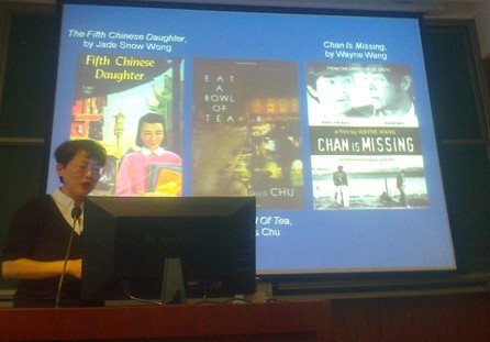 梁一萍教授报告的题目是《中国城侦探:艾德林<你被捕了>中的他者再现》。她从1850年第一批留美的华裔美国人讲起,到1974年美国电影《唐人街》的拍摄以及几位华裔作家共同出版的作品集《哎咿!亚美作家文选》,为大家展示了美国华人的边缘化的辛酸历史,并由此突显出中国城中的中国人在主流文化中的他者地位。在华裔作家艾德林(Ed Lin) 1976年的作品《谁被捕了》(This is a bust)中,由当时的美国人虚构出来的华人“偶像”侦探陈查理与黑人实际上形成了弱势联盟。这表明,华人作家不断用笔书写着华裔美国人,并为他们进行着无声地抗争。