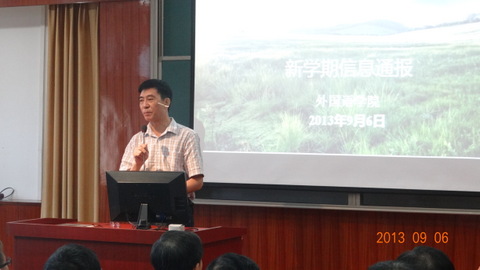 高晓芳副院长就新学期学院的教学工作作了具体安排,她强调了新学期开学教学秩序检查的重要性,对检查内容和要求做了详细说明。她在会议中提醒教职工注意从本学期开始教室管理移交至物业公司,课程调整需要提前填写《教学异动情况登记表》以调整教室使用时间。李俄宪副院长对日语以及小语种目前学科发展情况作了简要介绍,并针对学院科研工作在会上向全院教师发起了动员。随后,李云书记并代表罗良功院长通报了暑假期间教育硕士顺利开学、研究生教学培养方案修订等各项工作情况。 李云书记还向全院教职工通报了学校及学院2013年的招生录取情况,我院2013年生源质量继续在全校名列前茅,英语专业的第一志愿率为99.32%,显示了我院对于高考考生的吸引力。李云书记就马敏书记、杨宗凯校长在新学期务虚会议上提出的党的群众路线教育实践活动的内容作了介绍,本次教育实践活动的主要任务聚焦在作风建设上,集中解决形式主义、官僚主义、享乐主义和奢靡之风这“四风”问题,校领导班子对这“四风”问题进行了建议和批评。 由于学校人事变动,原院党委副书记李刁老师出任学生工作部副部长。他出席了本次会议,并在会上简要回忆了自己在学院三年的工作。他说,这三年的时间和外国语学院产生了深厚的感情,自己无论在学校的哪个岗位工作都会为外国语学院的师生多做实事,多做好事。李云书记介绍了新任我院党委副书记的张静老师,张静书记在讲话中讲了在来学院工作之后对自身的三点要求“多学习、多思考、多做事”,争取让外国语学院的学生工作更上一个新的台阶。