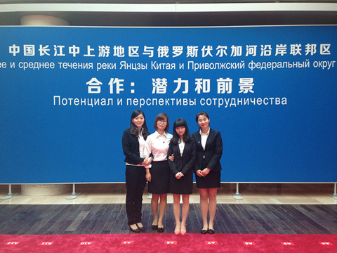 我院俄语系研究生张益林、周锦雯、韩学力、杨萌、王盼、张爱丽,俄语系大三学生袁雨露、刘博毅应湖北省外事侨办公室邀请作为志愿者参与了此次活动。同学们负责了材料翻译、联络外宾、宴会交替传译、以及导游翻译工作等。并分别为外交部副部长程国平、湖北省常委傅德辉、副省长王君正、省政府秘书长王祥喜、东风公司总经理朱福寿等领导人做了翻译。
