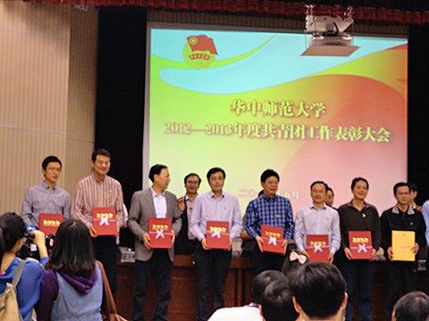 5月2日上午,我校2012-2013年度共青团工作表彰大会在科学会堂隆重举行。校领导马敏、杨宗凯、吴晋生、何祥林、李向农、谢守成、王恩科出席,各职能部门负责人、各院党委书记、党委副书记、团委书记和学生代表参加了大会。大会由校团委书记何金晖主持。