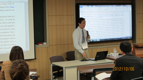 作为本届韩国叶芝协会年会的唯一主旨发言人,罗良功教授作了题为“‘大厦之下:’德里克•沃尔卡特与叶芝传统”的发言。罗教授以这两位诺贝尔文学奖得主的有关“大厦”的诗歌为例,分析了德里克与叶芝及其传统之间的承续关系。他认为,加勒比非裔诗人德里克的早期代表作《大厦的废墟》一诗对叶芝的《内战时期的沉思》进行了跨越时空的回应,但是这种回应并不是停留在诗歌形式与技巧层面,而是一种深层的文化思想和诗学策略的呼应:德里克继承了叶芝关于如何面对殖民地历史这座文化大厦的开放文化观和诗学主张,其目的是为加勒比各前殖民地国家摆脱殖民统治之后的文化重建与文学重建事业服务。 |