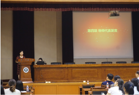 闫春梅教授作为教师代表讲话,她全程英语演讲,勉励同学们认清肩上所担负的责任,认真地工作和学习,踏实走好每一步,以崭新的面貌去迎接新的机会、新的挑战。
