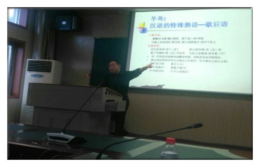 10.21日下午,上海外国语大学东方语学院金基石教授应邀在外国语学院韩语系做了一场题为“关于韩国语的特点(汉韩对比视角)”的精彩讲座。本次讲座为外国语学院第26期学术讲座即第一届海外韩国学麦穗项目国内外邀请学者循环讲座的重要环节。韩语系主任池水涌教授及韩语系教师出席了本次讲座。 金基石教授现任上海外国语大学东方语学院教授,亚非语言文学、语言战略与规划学、汉语国际教育专业博士生导师,亚非语言文学专业学科带头人,校学术委员会委员。 金基石教授分别从韩国语的语音系统特点、韩国语词汇系统特征、韩国语的语法系统特点(语序)、韩国文字(韩文)特点四个方面展开讲座内容。金教授结合自己韩语教学亲身经验,列举了很多学生学习韩语时容易犯的语法错误,讲解深入浅出,例证充分,幽默的语气博得在场学生的喜爱。