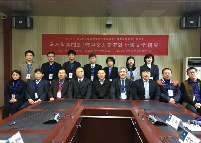 2017324日下午两点,2016年海外韩国学培育项目——“华中地区韩国学核心基地培育项目”国际学术会议在外国语学院3402会议室顺利召开,本次会议的主题是“中韩文人交流与比较文学研究”。华中师范大学外国语学院书记李云,院长罗良功,韩语系系主任池水涌教授,裴圭范教授出席了本次会议。,韩国中央研究院金乾坤教授,权五荣教授及延边大学郑日男教授,曲阜师范大学曹春茹教授,王国彪教授,南京师范大学俞成云教授,中南民族大学赵海波教授等也专程来汉出席了此次学术会议。
