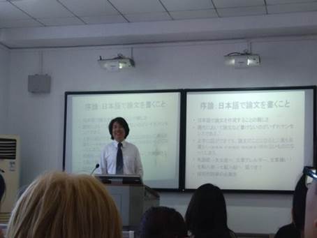白刚教授的讲座于6月22日下午在3504教室举行,主题为“母语和外语共架通向成功之金桥”。讲座上,白教授向日语系同学们传达了“掌握好外语的前提是扎实的母语基础”这一重要理念,呼吁同学们在学习日语的同时,不能忽视对自己母语——中文的学习。白刚教授强调,“母语是创造性思维的主体”,离开母语来学习外语,外语的知识只会是一潭死水。他同时指出,新时代的大学生,应当具有宽广的国际视野,尤其对于小语种专业的学生而言,大量的知识储备与丰富的词汇量不可或缺。当一名学生具备了扎实的母语基础、对于自己民族文化的深刻理解,以及丰富的外语知识储备,才能称得上学有所成。白刚教授的话语深刻而不失幽默,有时还会结合一些流行的网络用语,极大地拉近了与学生的距离。通过这场精彩纷呈的讲座,同学们对于外语学习的观念有了转变,并认识到了母语学习的重要性,对日后的专业学习和职业发展有了更明确的规划。 6月27日上午,李俄宪教授为2014级日语系学生进行了有关学术论文写作的指导。讲座上,李俄宪教授结合自身多年的学术研究经验,深入浅出地讲解了日语学术论文写作的方法和要求。其中,李教授多次向同学们强调了论文写作需要具备严谨性与逻辑性:“论文的质量与文章的长短无关,一篇真正有价值的论文,其闪光点在于作者的观点与思想,因此,文章应该言简意赅。”同学们全程认真做笔记,十分珍惜这一学习机会。课后,2014级日语系学生刘平说道:“李老师向我们介绍的经验十分宝贵,并且这些方法能够运用到毕业论文的写作之中,对我们有很大的帮助。”
