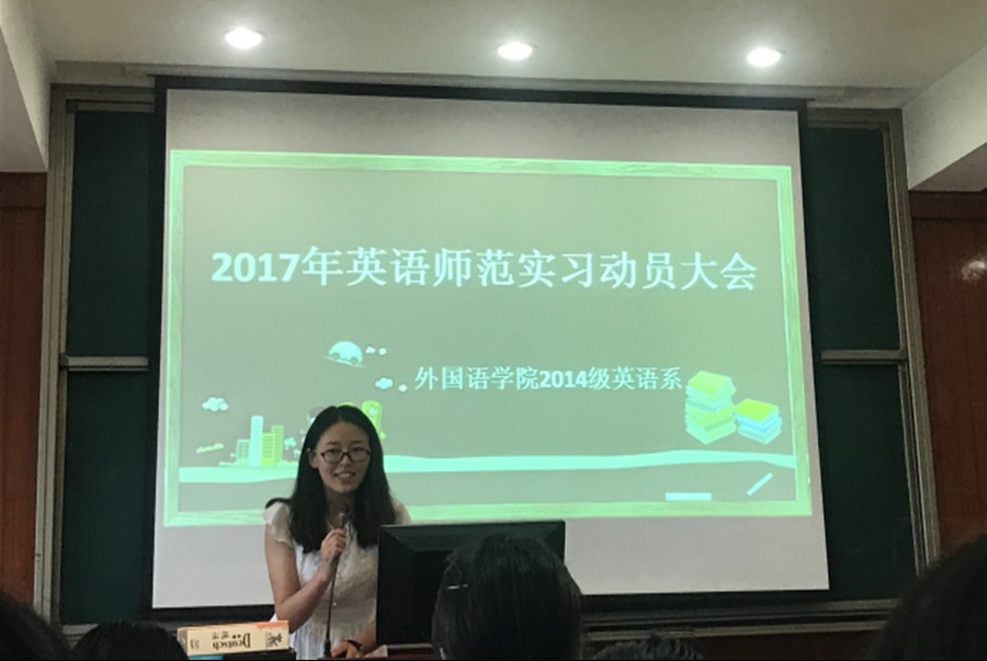 9月8日下午,我校外国语学院英语师范系2017年下半年师范生实习动员大会在3408会议室召开。实习指导老师翁德琼、方幸福、高晓芳、李正林、张丽君应邀出席指导,2018届英语系全体免费师范生参加会议。