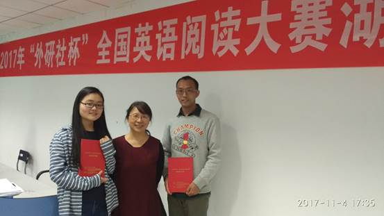 图二(从左到右为:李萱,华中师范大学外国语学院副院长杨虹教授,指导老师晏胜) 本次大赛引起了外国语学院公共外语系的高度重视和大力支持,并得到校内各专业各年级学生的积极响应。从校园初赛到省赛,阅读大赛指导老师晏胜督促并全程指导了学生的备赛工作。 |