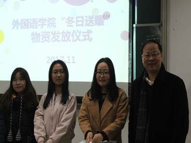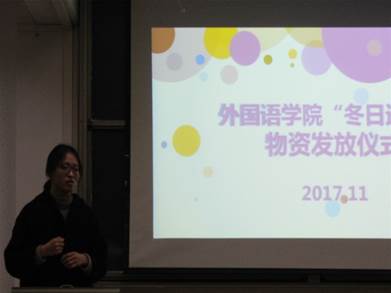 11月23日中午,外院2017年度“冬日送暖”活动在3218举行。出席本次活动的有外国语学院党委书记李云,各年级辅导员,活动由14级和17级辅导员潘英子主持。