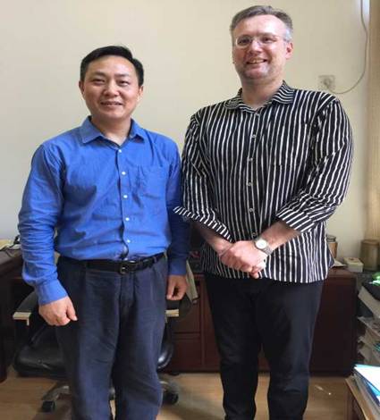 在讲座开始之前, Dervin教授与外国语学院院长罗良功教授进行了热切交流。