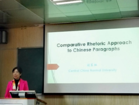 接着,华中师范大学外国语学院的刘东虹教授为大家带来题为“Comparative Rhetoric Approach to Chinese Paragraphs”的讲座。刘老师旨在用实证方式探寻不同文化背景下的写作修辞差别。通过对比中美两国中学生教材中的课文,考据中国教材里汉语说明文的段落修辞方式与美国教材的说明文是否相似。从而强调写作教学和研究中英语修辞教学的必要性。