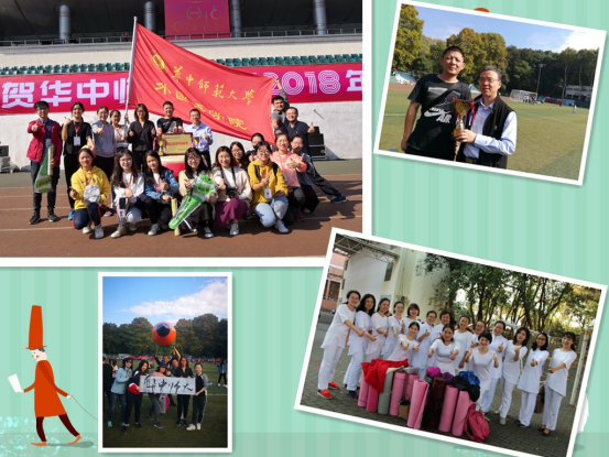 2018年11月1日至3日,华中师范大学2018年运动会顺利举行,外国语学院教工组队在学院党委和工会的组织下参加了开幕式瑜伽表演和教工组4项目的比赛,取得了骄人的战绩。 在首日(1日)陆地龙舟和跳绳两项比赛中,我院教工队取得了不俗的成绩。但在门球比赛中,所有的队员虽然拼尽了全力,很遗憾,没有进入全校前八名。 在第二天和第三天(2日和3日)的比赛中,我院教工再接再厉,两战两捷,在雷霆战鼓和谱写华章的比赛中,取得了优异的成绩。 另外在此前一周的兵乓球比赛中,我院教工夺得了乙组团体亚军。 最终我院教工代表队获得了23.5分的团体总分,全校排名第七。