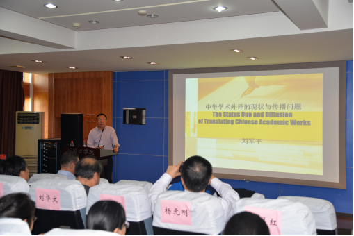 下午的论坛于2:00准时开始,武汉大学的刘军平教授以围绕“中华学术外译”为题展开学术研讨。刘教授认为翻译工作者有必要提供中国概念和中国方案的支撑,并在此基础上,重建国际学术话语权,躬行译介,重塑译介的人文社科话语。刘教授也强调在推进中国文化“走出去”的过程中更应注意取效功能(perlocutionary effect),以讲话者与听话者相互追求理解的模式,以其共同认可的有效性主张(validity claim),为文化走出不可通约和跨越传播障碍提供一条可行途径,以达到较好的传播效果。