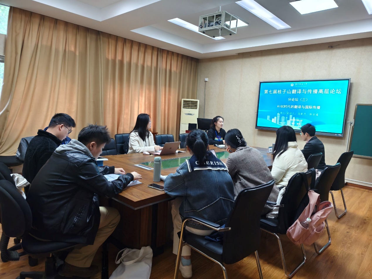 23日下午,来自全国各高校的百余名师生分成七个小组,在分论坛上就翻译与国际传播主题进行了深入讨论,话题主要从七个方面展开,覆盖了中国文化的国际传播、精准国际传播策略、AIGC时代的翻译挑战、中华学术外译效果评估、中国特色外交话语传播、中央与地方及社交媒体的国际传播,以及国家翻译与国际传播能力的提升。讨论中,代表们积极互动,观点碰撞,展现了青年学者间的学术交流和知识共享。分论坛结束后,各小组主持人、点评人对讨论内容进行了全面总结和点评。