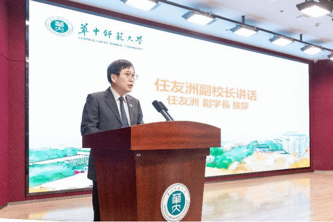 任友洲代表学校热烈欢迎创价大学代表团来访,我院张成老师担任同声传译。任校长简要回顾了两校合作渊源,介绍了华中师范大学办学历史、发展现状、学科建设及外国语学院日语专业建设情况,并表示,国际化是学校的重要发展战略,外国语学院高度重视对日交流,在教师交流及合作科研、学生交换及联合培养、共同举办国际会议等方面开展了一系列务实合作。期待以此访为契机,进一步深化两校友谊,推动师生双向流动,并希望通过青年交流,带动两国社会各界和民众广泛参与中日友好事业,为中日关系更好发展注入强大力量。