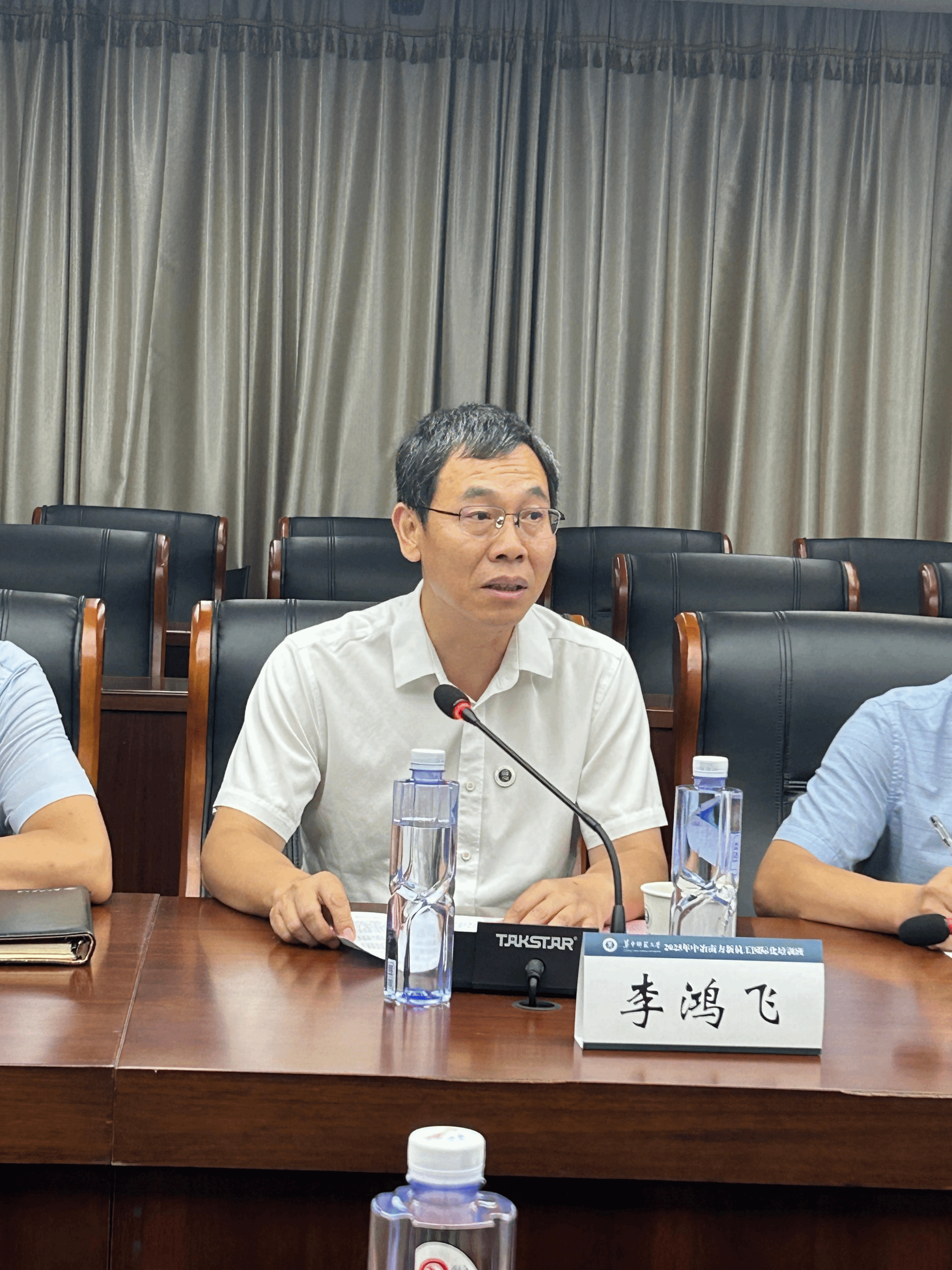 在开班仪式上,李鸿飞副校长作为本次培训任务承接方代表致欢迎辞。李校长对中冶南方学员来到华师参加为期三个月的脱产培训表示热烈欢迎。他说,本次培训任务是我校与中冶南方战略合作的一个具象,也是中冶南方实施国际化发展战略的重要举措,华中师大将在服务用户需求的前提下不断创新,保障培训项目高质量完成,展现服务企业的华师优势与特色。