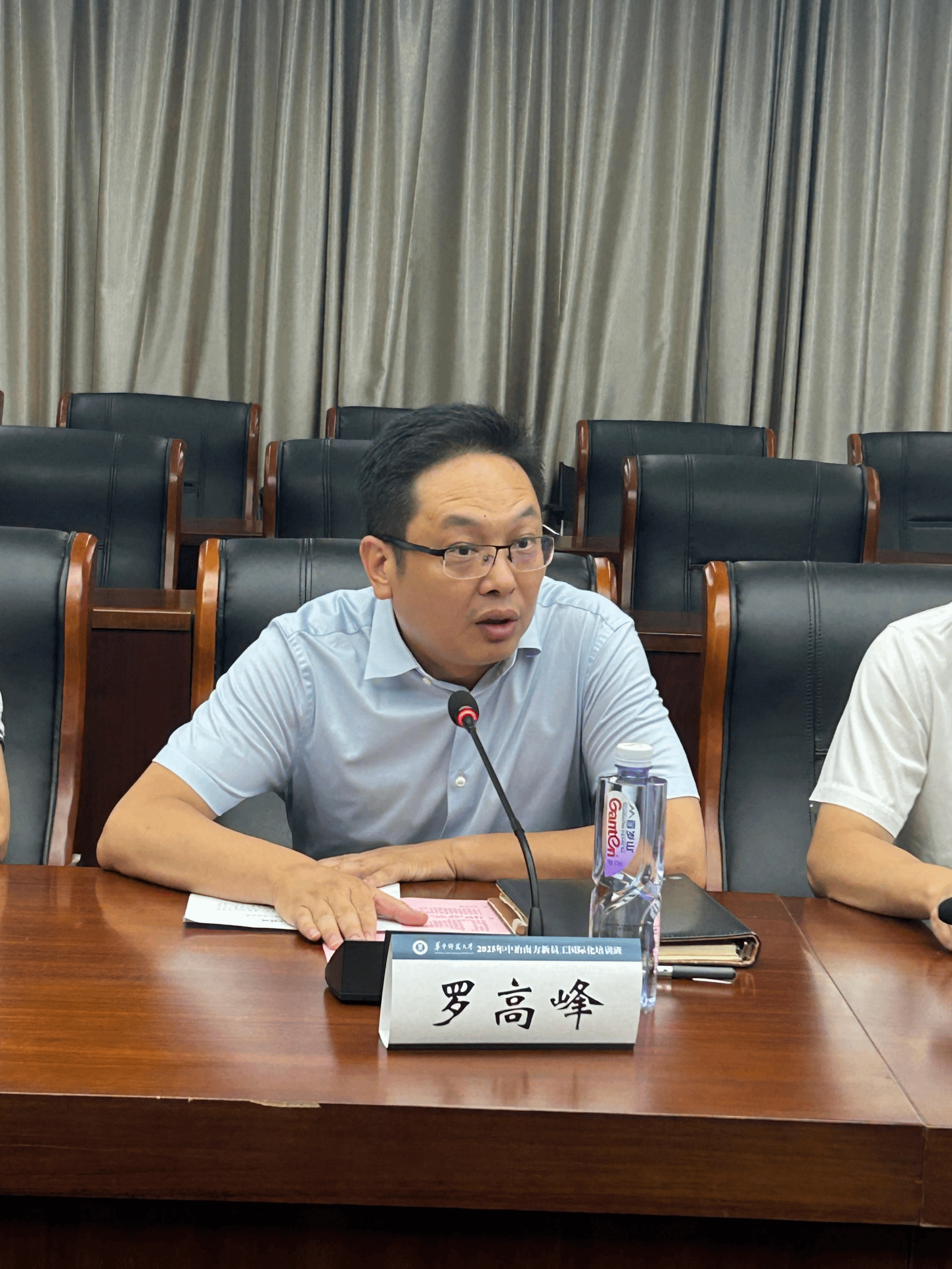 外国语学院院长罗良功教授介绍了本次培训的方案和安排。他从培训目标、培训内容、培训形式、培训师资、培训质控等五个方面对本次培训的设计逻辑、创新特色与具体安排作了简要阐述。