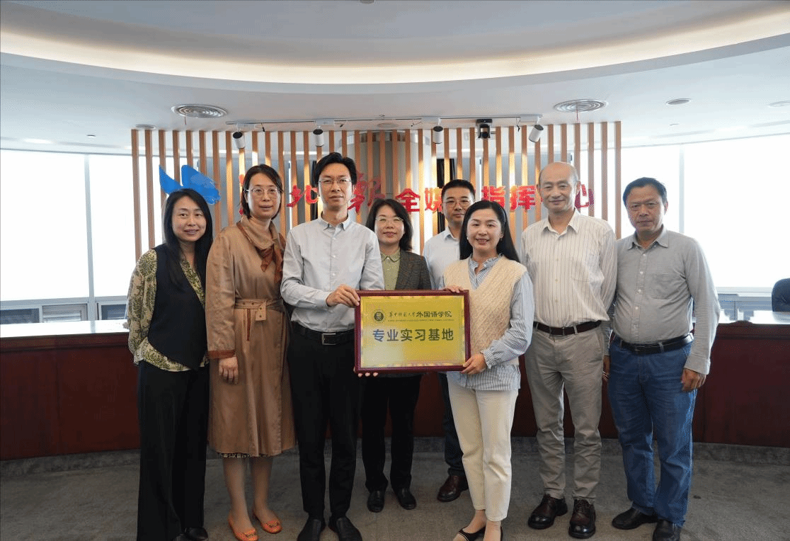 课程学习为实践奠定了理论基础,真实岗位的锻炼则让学生进一步深化认知、提升能力。学院高度重视实践教学环节,积极拓展与主流媒体和国际传播机构的合作。湖北日报新媒体发展中心是湖北重要的对外传播平台,我院与该中心于2024年10月正式签署国际传播合作协议,共建翻译专业实习基地,为我院学生提供国际传播实训。2025年6月17日,学院领导与教师代表专程走访该中心,深入了解实习平台建设与学生成长情况。实习过程中,湖北日报新媒体发展中心主任张磊、主编宁芳、《特别关注(英文版)》总编辑马亚伦等资深媒体人在选题策划、内容编译、跨文化表达等方面给予了学生悉心指导与专业支持,帮助同学们在实践中快速成长。