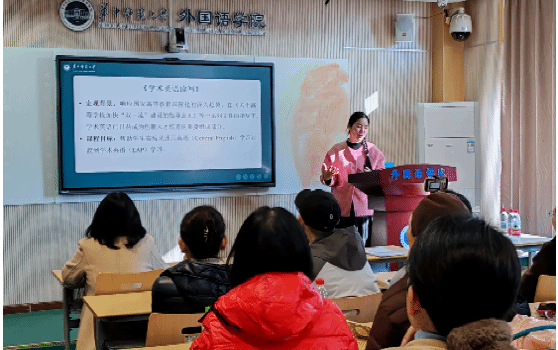 为深入贯彻落实国家新时代教育改革发展要求,着力构建高素质外语人才培养体系,大学英语教学研究中心于11月19日下午在3406会议室成功举办秋季教研沙龙。本次活动以“师说·新课:学术英语一线教学的实践与反思”为主题,由中心主任刘文波老师担任主持,特邀外国语学院资深教学专家闫春梅教授担任与谈嘉宾,沙龙吸引了学院众多教师参与,共同围绕学术英语教学创新展开深入研讨。