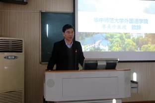 11月15日,由我院主办的首届华中外国语言学论坛如期举行,论坛主题为“对话交流、互补融通及本土化”。武汉大学外国语言文学学院院长马萧教授、华中师范大学外国语学院党委书记李云、华中师范大学外国语学院院长罗良功教授、华中师范大学外国语学院廖美珍教授等嘉宾出席了论坛,武汉大学、华中科技大学、华中师范大学、湖北大学、中南财经政法大学、武汉工程大学等高校的九位专家以及来自全国部分高校的近百名学者、研究生参加了论坛。