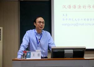 本次论坛的最后一场报告为“汉语语法的作格性”。华中师范大学外国语学院王勇教授指出,在功能语言学中,及物系统和作格系统都是用以表征经验意义的,二者并协互补。前者以“动作者+过程”为核心,表征行为及其延及的对象(deed and extention),后者以“媒介+过程”为核心,表征事物间的因果(cause and effect)关系。汉语中作格性在词汇、词组和句法层面上都有体现。词汇上,作格动词兼有及物和不及物用法,可以出现在“NG1 ^ V ^ NG2”、“NG2 ^ V”两种句式中。以这两个句式作为标准,动结词组也可表示作格意义。在句法层面,事件类存在句和把字句表示作格意义。