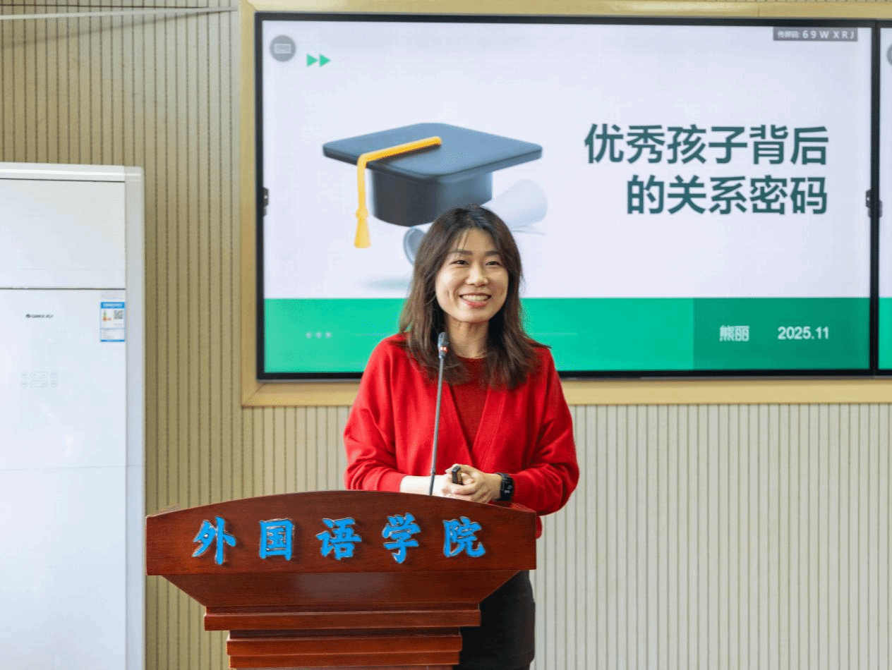 11月5日下午,第三期“语思”青年教师沙龙在3402会议室顺利举办。本次活动以“做智慧家长,育优秀孩子”为主题,华中师范大学第一附属中学英语高级教师、优秀班主任熊丽担任主讲嘉宾,外国语学院陈雅琴、汉娜、刘洋、金英丹、谢海燕、张茂林、邹春燕、左婵等老师作为特邀嘉宾,与我院广大教职工交流和分享家庭教育的经验。学院党委书记麻旎、党委副书记罗舰、英语系熊兵老师出席本次活动,工会主席何卫华担任主持人。