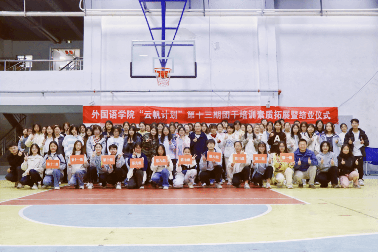 11月9日,外国语学院(以下简称“外院”)“云帆计划”第十三期团干培训结业仪式暨素质拓展活动顺利举行。本次活动旨在进一步提升团学骨干综合素质,增强团队凝聚力,为扎实开展工作打下坚实基础。外国语学院团委书记吴波,学院团委、学生会主席团成员、各部门负责人及来自各年级的学生骨干们参加。组织部负责人莫子航主持活动。