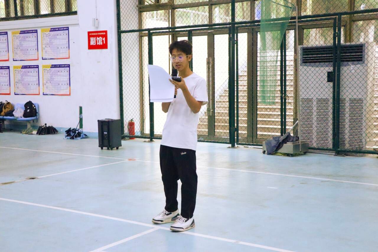 莫子航介绍本次素质拓展活动的基本情况。他强调,本次活动旨在通过集体协作增进各团学组织与班级骨干之间的沟通了解,希望各小组积极响应,踊跃参与,展现良好的精神风貌与团队意识。