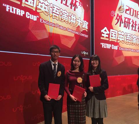 12月11日,在北京外研社国际会议中心举行的“外研社杯”全国英语演讲大赛落幕。我校聂泽锋(生科15级)、刘思越(化学15级)和王靓(英语15级)三位同学获得全国二等奖,是我校学子参加全国英语演讲比赛的一大突破,充分反映了我校大学英语课程改革的成效。