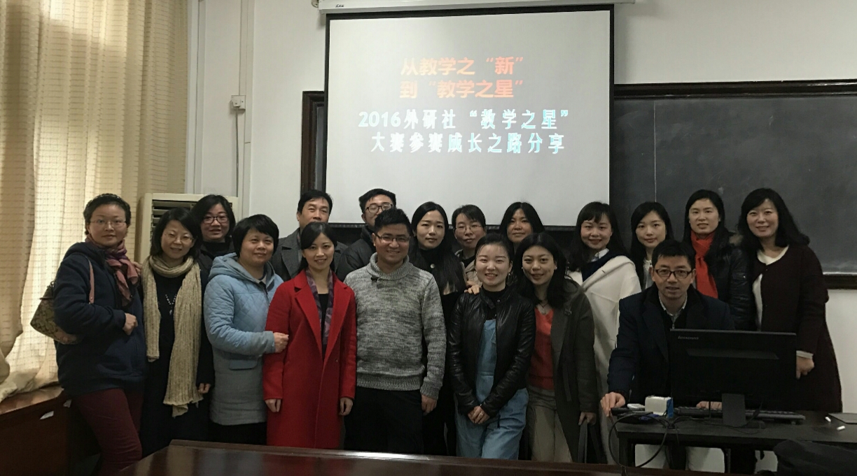 3月24日上午10:00大学英语教学研究中心在3318教室举行2017年春季沙龙“从教学之新到教学之星”。刘文波、李珺和王建洋三位老师分享了他们的备赛参赛历程、经验及心得。 刘文波老师获得第七届“外教社杯”全国高校外语教学大赛视听说组全国特等奖。她介绍了大赛的赛程和赛制,自己的参赛历程和感悟。内容涵盖了授课说课评分标准、课程设计考察的各个项目(教学理论、教学内容、教学设计和综合素质等),阅读教学理论书籍及文献,利用视频素材进行授课说课设计(素材分析、主题挖掘、教学设计、语言特点、内容结构、主题思想、切实结合教学素材进行分析与教学设计)等。 李珺老师获得第七届“外教社杯”全国高校外语教学大赛综合组全国三等奖。她介绍了大赛的赛程安排和比赛规则,录像授课评分标准及权重(教学内容、教学过程、教学效果和综合素质),从选材、思路、团队、着装等方面讲述了自己的录像授课准备心得,回答问题的评分标准及权重,以及说课准备心得等(包括框架、文体练习、文化背景知识、课堂活动设计等)。 王建洋老师获得2016年外研社“教学之星”大赛全国亚军。他从参赛的心路历程和微课的制作两方面向大家介绍了参赛的整个过程。自我成长,家人的鼓励和支持是激励他参赛的原因。在竞赛过程中,他学习了微课及翻转课堂理念。在介绍了选定的微课主体、设计微课PPT以及制作微课视频的基础上,他对整个参赛过程进行了反思,总结了大赛的收获,最后详细介绍了微课制作的整个过程。