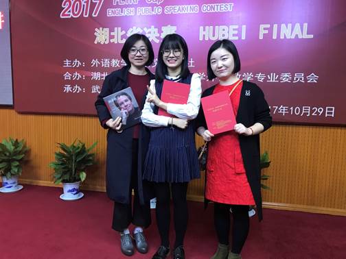 10月29日,2017 “外研社杯”全国英语演讲比赛湖北赛区决赛于武汉科技大学城市学院举行,我院2015级外国语言文学专业学生王靓以92.32的最高分获湖北赛区冠军,并将继续代表湖北省出战全国赛。 “外研社杯”全国英语演讲大赛在国内外广受关注,已成为全国参赛人数最多、规模最大、水平最高的英语演讲赛事,是由外语教学与研究出版社、北京外研在线教育科技有限公司和教育部高等学校大学外语教学指导委员会、教育部高等学校英语专业教学指导分委员会、中国外语教育研究中心联合举办的公益大赛。 经过湖北赛区预选赛,21名选手晋级湖北赛区决赛,其中王靓以第一名的成绩脱颖而出。此次决赛分为3分钟定题演讲、3分钟即兴演讲以及2分钟评委问答三个环节。定题演讲主题为“China, A Global View”,参赛选手多停留在大的层面表达想法,而王靓选择以“文化软实力”的小切口进入,层层递进,呼应主题。即兴演讲环节,王靓也结合自身经历,从三个层面诠释“How to make a child feel special”,思路清晰,表达流畅,引来评委点头共鸣。