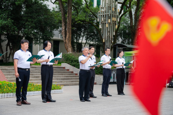 在“七一”建党节来临之际,6月29日上午,华中师范大学外国语学院在学校恽代英广场开展了“学习新思想 奋进新征程”庆祝中国共产党成立102周年主题党日活动。副校长任友洲、学院全体班子成员、全体教工党员、退休党员代表、学生党员代表、入党积极分子代表、共青团员代表等参加活动。外国语学院党委副书记杨灵珍担任主持人。