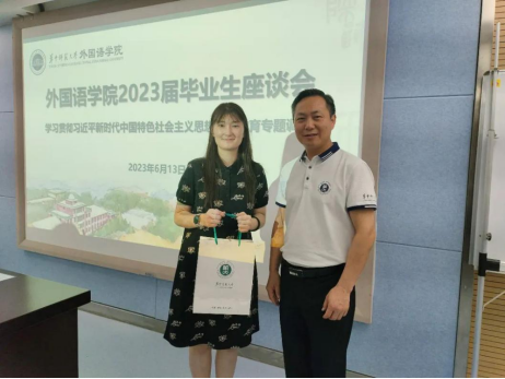 会议最后,与会教师为毕业生赠送纪念品。至此,外国语学院2023届毕业生座谈会圆满结束。