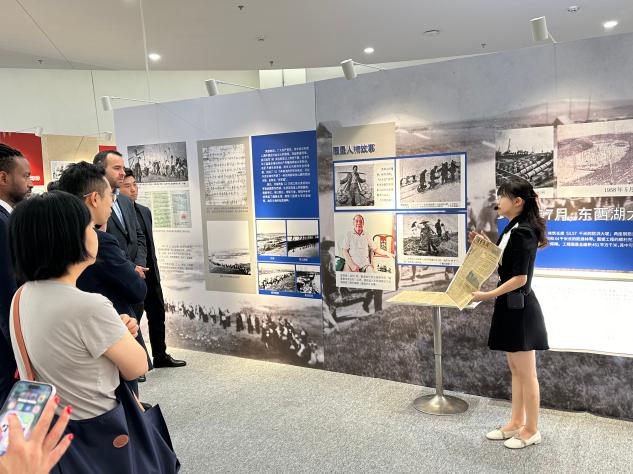 在武汉东西湖区档案馆,张静仪同学为代表团讲述了东西湖区从荒湖到开发区的巨大变迁。半小时的讲解带领大家领略了这片区域的华丽蝶变,展示了新时代武汉丰富的科教资源、得天独厚的区位优势以及雄厚的产业实力。张静仪感言:“不忘来时路、走好脚下路、坚定未来路,这不仅是本次档案馆展览的主题,更激励着每一位语言学习者不断精进磨练,服务社会,为国家经贸文化交流贡献自己的力量。”