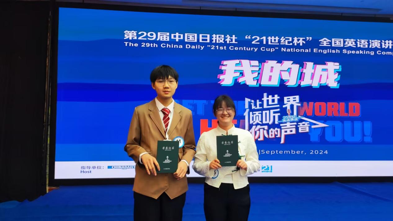 两位同学赛后都表示,感谢学院为他们提供了积极的学习环境与平台,从训练到参赛,成绩的取得离不开学院和老师们的指导与培养。期待两位同学在未来取得更辉煌的成绩,也希望有更多同学能够积极参与各类英语演讲比赛!