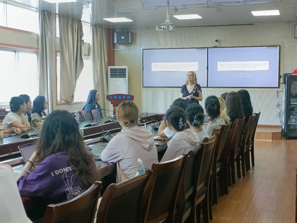 Azpiroz教授的讲座系列涵盖了中国与拉丁美洲在西班牙语人才培养、学习特点以及教育项目方面的研究。她深入探讨了中国学生在不同教育环境中的学习风格变化,揭示了跨文化语境下中国学生的西班牙语学习模式及其特点。此外,María教授还探讨了西班牙语在中国大学的教学法、教材使用及教师角色,为中国大学的西班牙语教学提供了新的视角,并对教学法和文化内容的整合进行了深入分析。