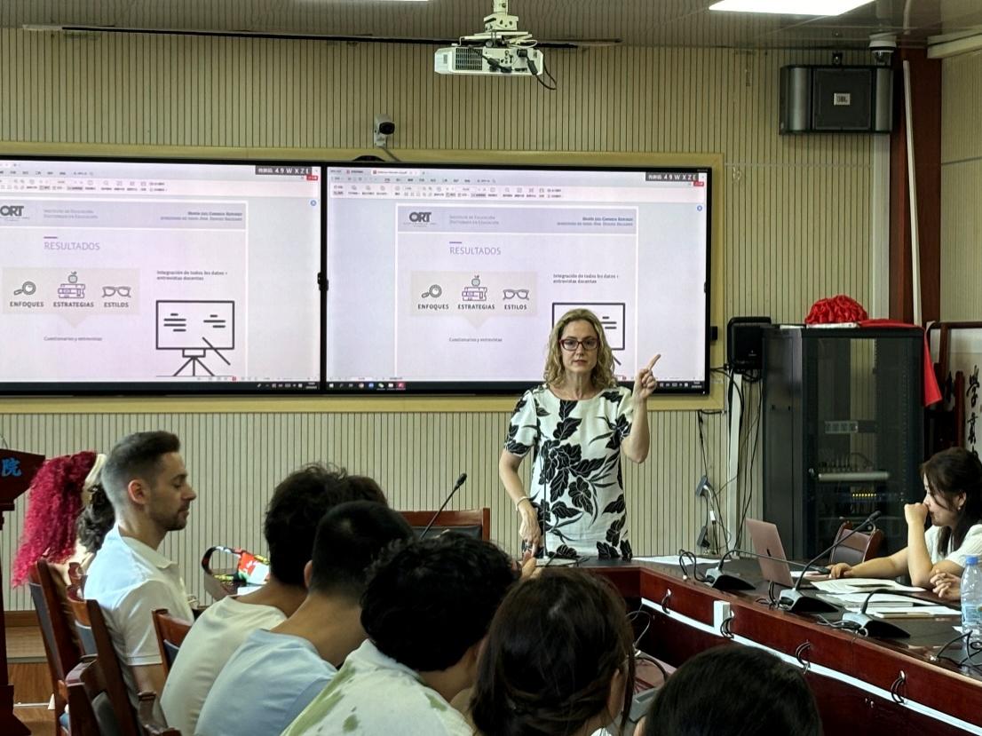 在讲座中,Azpiroz教授介绍了中国西班牙语学习者的个体学习特点,分析了学习方式与成绩之间的关系,并探讨了沉浸式学习中的文化因素对学习动机和记忆的影响。她还讨论了乌拉圭的Ceibal计划及其对教师职业发展的影响,