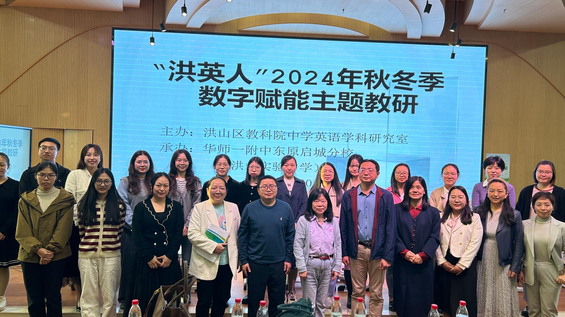 2024年10月30日,学院外语教育研究中心团队受邀参与“洪英人2024年秋冬季数字赋能主题教研活动”。该活动由洪山区教科院中学英语学科研究室主办,洪山实验中学承办,旨在深入探索数字化技术在英语课堂中的创新应用与实践路径。外语教育研究中心主任闫春梅教授携中心成员范玉梅、余波、邹春燕、杨世玉等教师,与洪山区中学英语教研员陈世强老师、华中师大一附中初中部彭静老师及众多洪山区初中英语教育工作者共同出席并深入研讨。