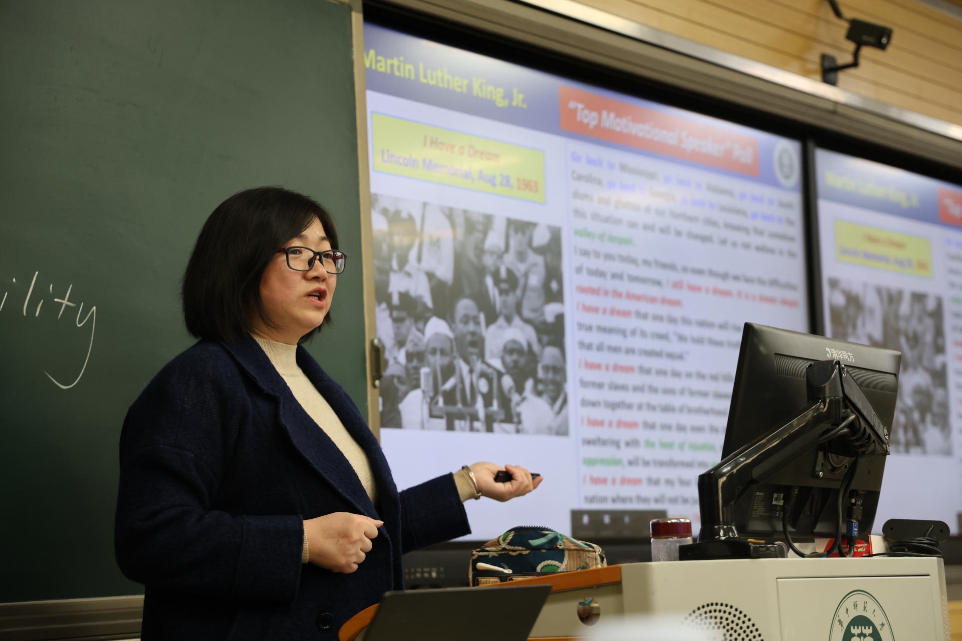 为全面贯彻党的教育方针,大力弘扬教育家精神,推进我校一流本科课程建设,促进学校教育教学高质量发展,创新本科人才培养,本科生院于2024年10月底启动了第十届教学节本科优质课程展播活动。11月25日下午4点10分,公共外语系骨干教师陈志红副教授开设的国家级一流课程《英语演讲艺术》作为外国语学院优质课程代表,在8402教室进行了线上线下同步展播。学校教学创新专家组周维第、陈蓓两位专家教授进课堂观摩,并与授课教师沟通交流,给予好评。