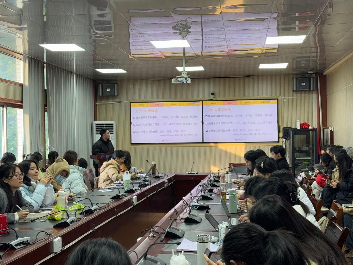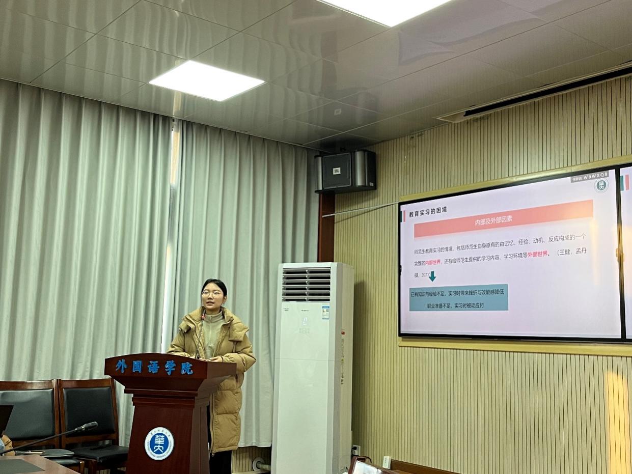 12月20日上午,外国语学院研究生论坛(外语教育方向第24期)暨语思卓越班系列活动在3402教室顺利举办。本次论坛主题旨在探讨研究生教育实习的理论与实践,助力外语教育方向专业人才培养。学科教学方向2024级研究生吴千豪以及2023级研究生邓炜鹏、祝悦、扈丹分别从理论和实践两个角度分享对实习的认识和实践经历,范玉梅老师、张丽君老师做现场点评。本次论坛由研究生杨子杭主持论坛,外语教育方向部分教师、硕博士生以及语思卓越班(外语教育方向)学生代表参加。