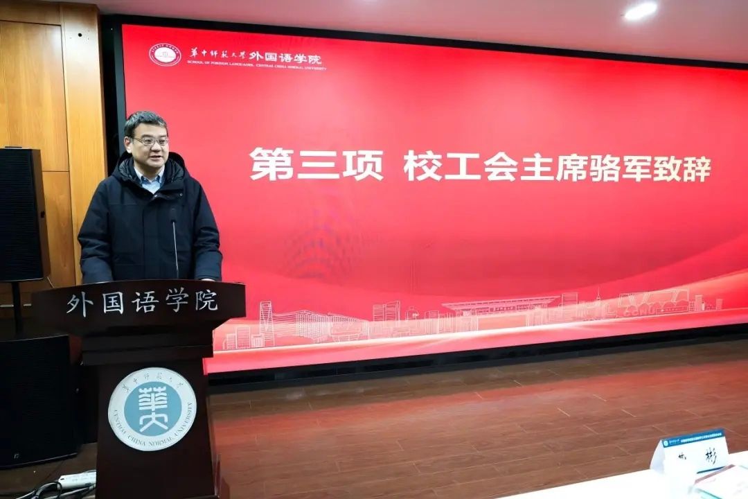 1月19日上午,华中师范大学外国语学院第五届教职工代表大会第四次会议在3504报告厅隆重召开。校工会主席骆军,学院党委书记麻旎、院长罗良功,党委副书记、纪委书记肖志刚,党委副书记罗舰,副院长曹彬、王佳、苏艳及40余名教职工代表出席会议。