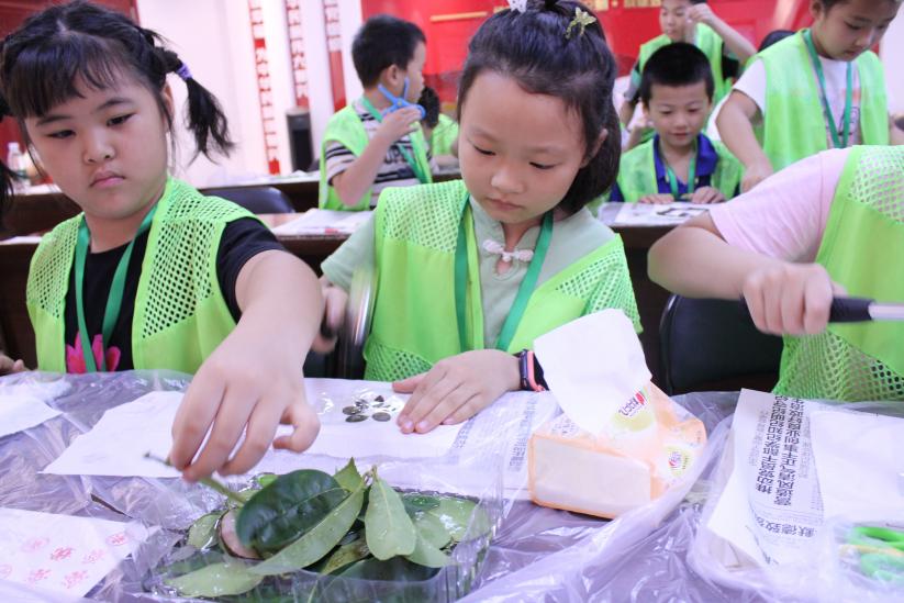 “维护生物多样性,共筑美丽家园。”德和社区的汪英姿老师则为孩子们带来了一场关于“进化与适应之美”的科普盛宴。她以自然界中生物多样性的丰富实例为引导,从形态、色彩和行为三个维度深入剖析了生物多样性的成因。通过孔雀尾羽的绚丽、大熊猫配色的独特以及园丁鸟筑巢的精巧等案例,激发了孩子们对自然界的好奇心与探索欲。此外,植物拓印活动更是让孩子们在动手实践中感受到了植物的多样性与大自然的神奇魅力。