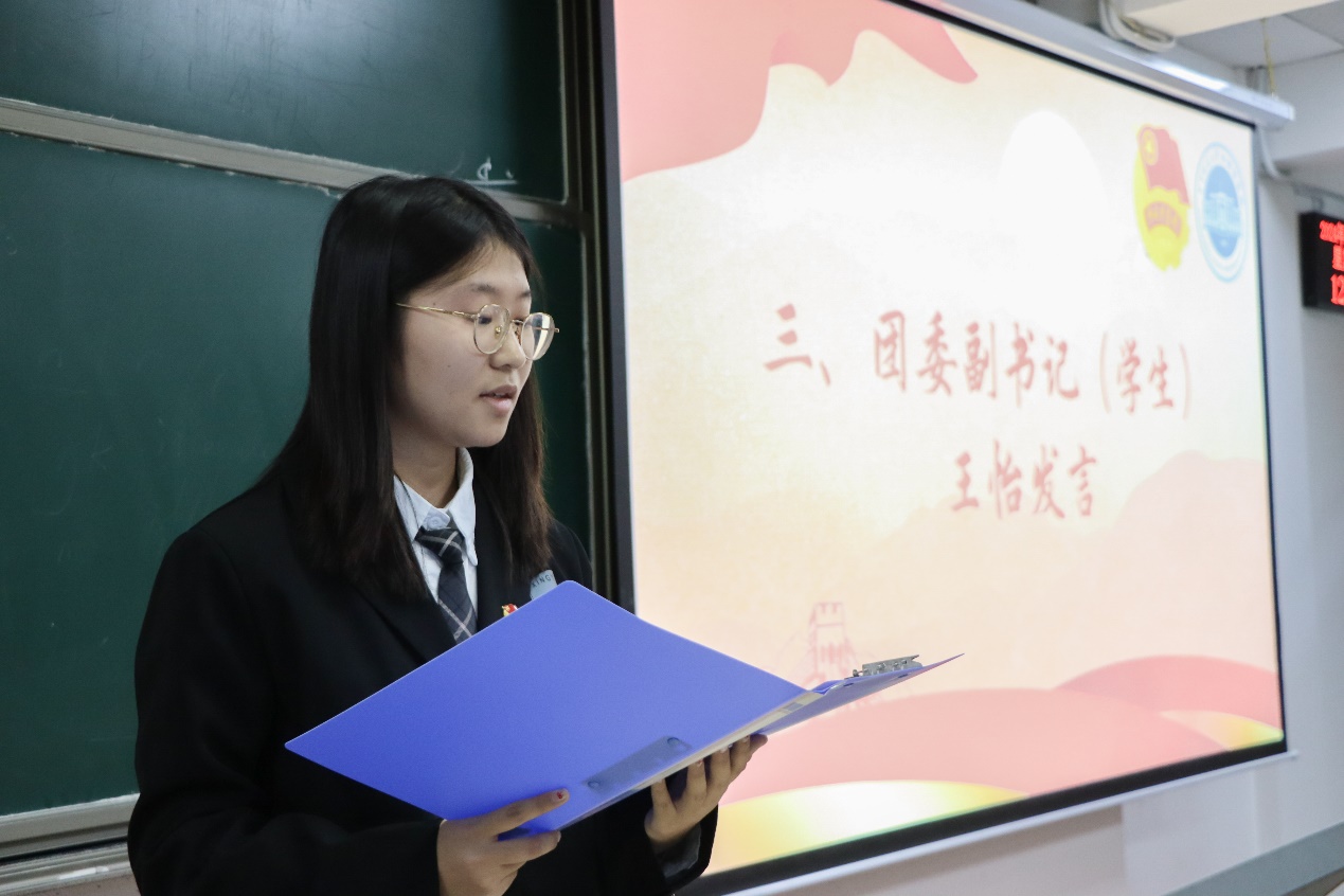 团委副书记(学生)王怡对新成员提出几点期待,希望同学们能在言行举止间践行规范,真诚有礼地与他人交流沟通,以专业态度对待每一项任务,提高自身工作效率,同时成员们应高效、友好交流,团结合作。王怡鼓励同学们携手并进,以坚定的信念和不懈的努力,共同展现更优秀的外院风采。