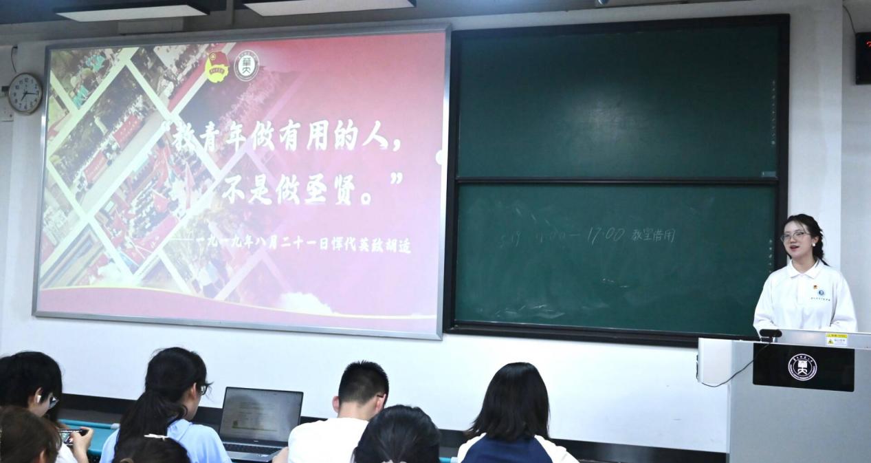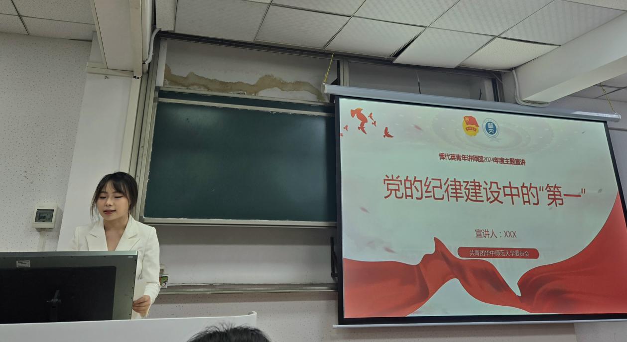 华中师范大学恽代英青年讲师团成员曾羽彤受邀为外国语学院2023级小语种全体学生开展“党的纪律建设中的‘第一’”主题宣讲,领学习近平总书记关于全面加强党的纪律建设的重要论述。讲师团宣讲围绕党的纪律建设发展历程,聚焦众多“第一”。她还介绍了新修订的《中国共产党纪律处分条例》,突出其与时俱进的特点,使同学们意识到新时代青年应以铁的纪律要求自己,保持忠诚干净担当,为实现中国梦贡献青春力量。