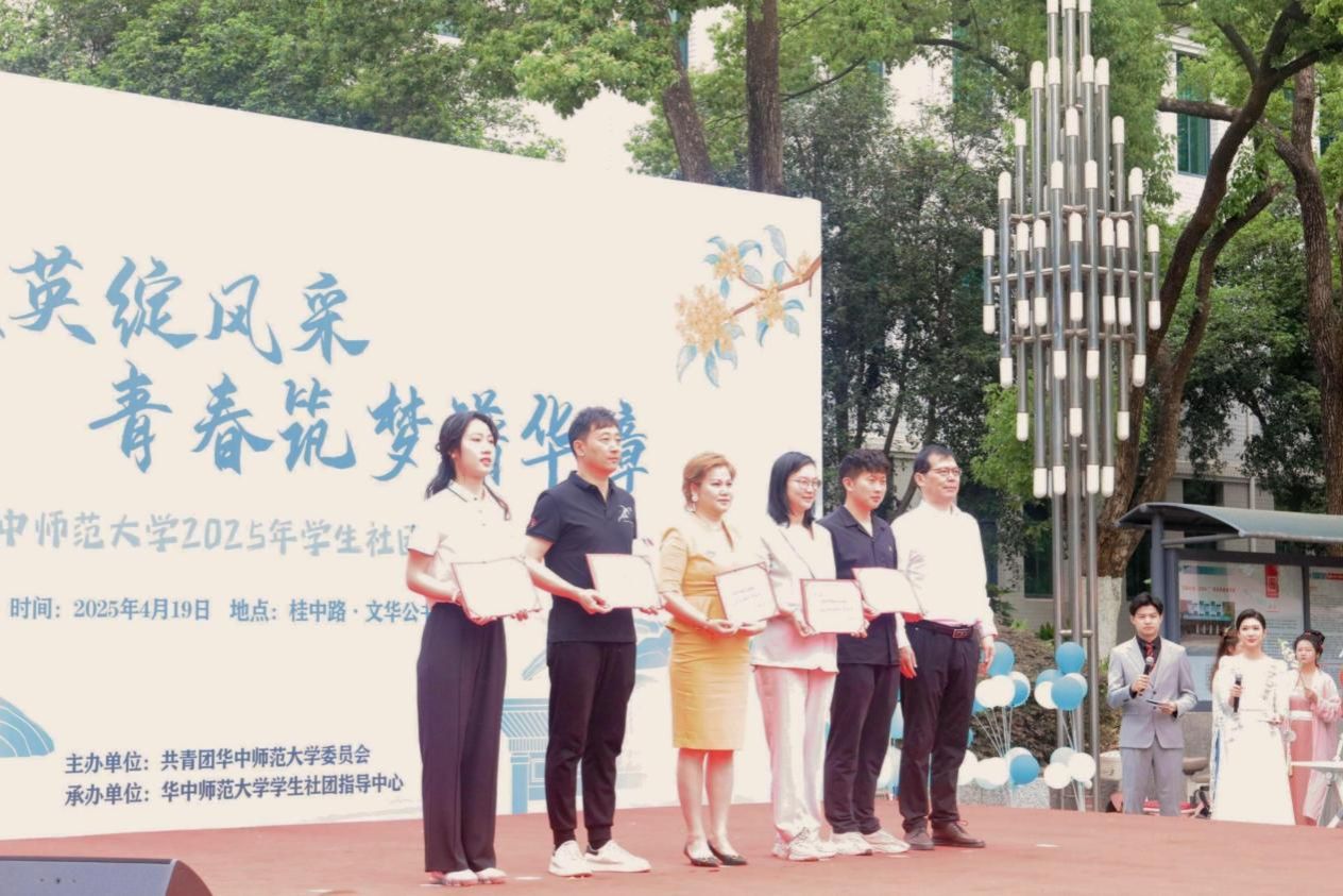 4 月 19 日,华中师范大学 2025 年“百社撷英绽风采,青春筑梦谱华章”社团文化节在桂中路开幕。外国语学院党委副书记陈哲,学院团委副书记(学生)王怡、熊诗韵及学院团委社团部全体同学参加开幕式。