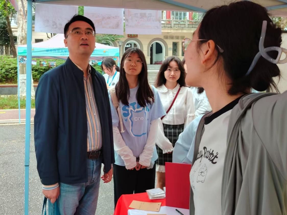 开幕式结束后,陈哲与学院团委社团部同学参观了学院挂靠社团的展位。陈哲与各学生社团负责人交流,了解社团创意构想,观摩社团文化成果展演。他对同学们在活动策划中的表现给予肯定,鼓励大家继续打造思想性、艺术性、创新性有机统一的精品活动,以社团文化繁荣校园生态。