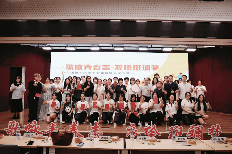 本次班级风采大赛以“歌咏青春志,衣绘斑斓梦”为主题,采用班团协作模式,旨在促进同学情谊、激发集体创造力,彰显外国语学院各班级的独特风采。活动通过班徽、班服展示及班歌演绎,让每个班级都能以独特的方式讲述自己的青春故事。